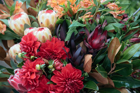 Vibrant red & orange blooms for a September Spring Wedding at Abbotsford Convent
